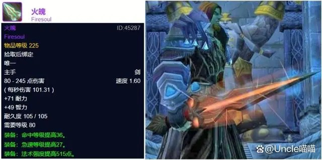 有了它,你还苦苦守着克尔苏加德,眼巴巴地盼着逆潮吗?别闹了!尤其是那些练小号或者不喜欢参加大型团本的勇士们,这把火魄绝对是居家旅行、杀人越货的必备良品!