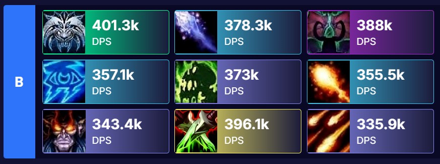 B级别的DPS职业有鸟德、奇袭贼、奥法、湮灭唤魔师、增辉唤魔师、生存猎、恶魔术、猫德和射击猎。