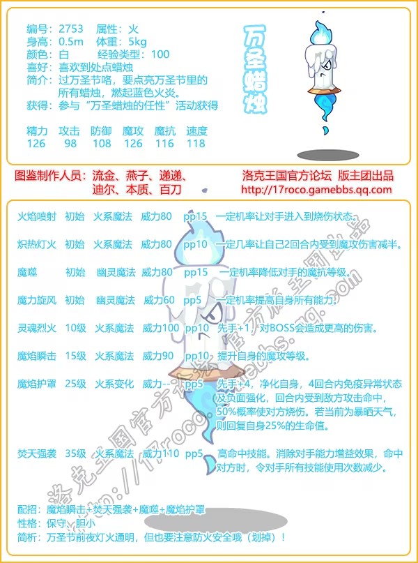 话不多说,赶紧来看看它到底有哪些“点亮全场”的绝技吧!(技能表详情请仔细研究,练好技能,才能带着你的万圣蜡烛,在洛克王国里横着走哦!)。