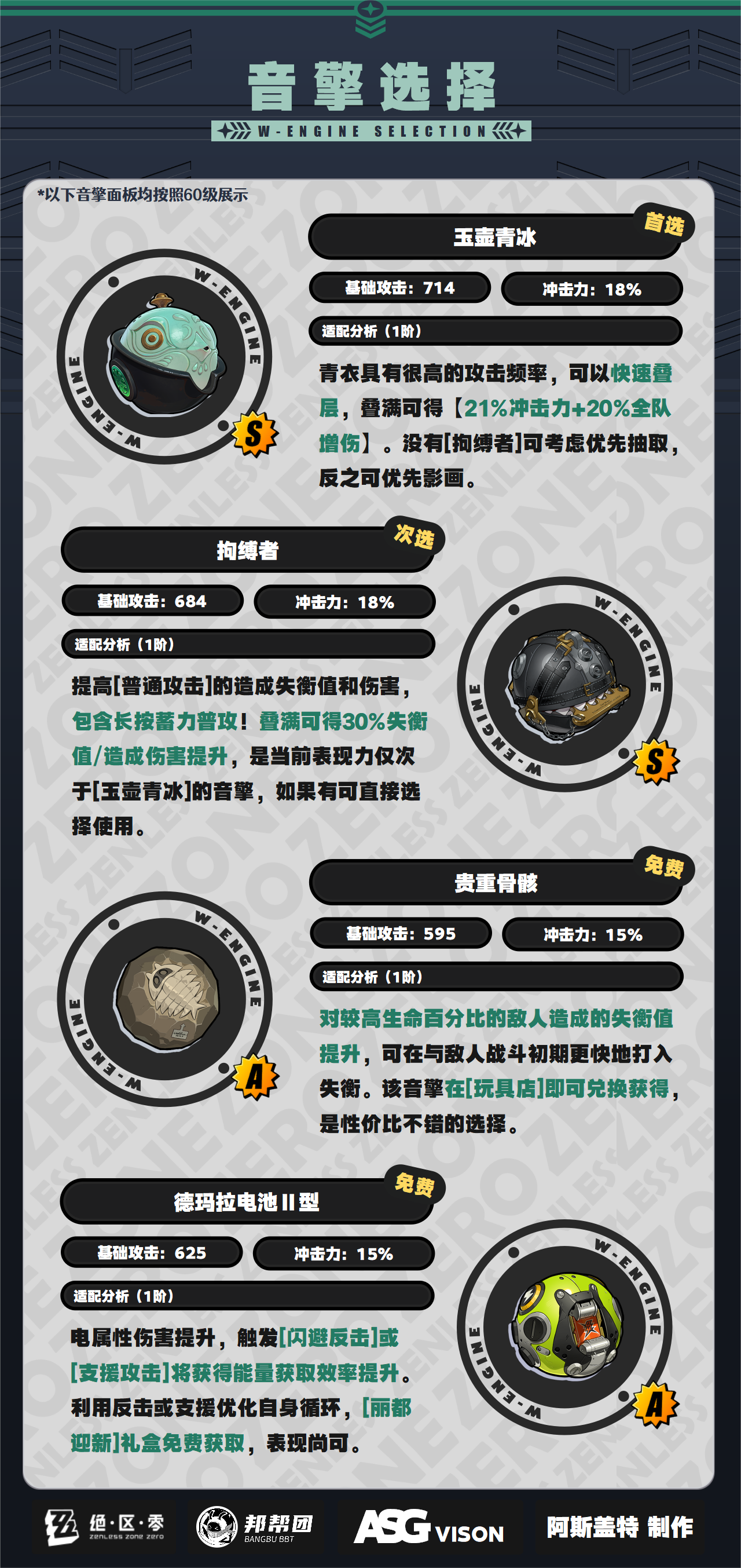 ① 作为击破角色,前期中期(甚至后期)都可以只考虑冲击力——确保6号位的主词条一定是冲击力,再搭配音擎提高冲击力数值。