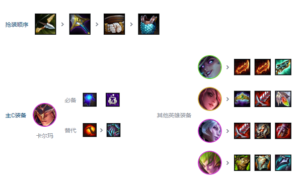 让剑姬对着敌方C位左右侧切入,凭借技能70%的减伤和女巫羁绊的回血,根本不需要绕后!记住,不要担心剑姬的生存能力,给她足够的装备,她自己就能吸回来!