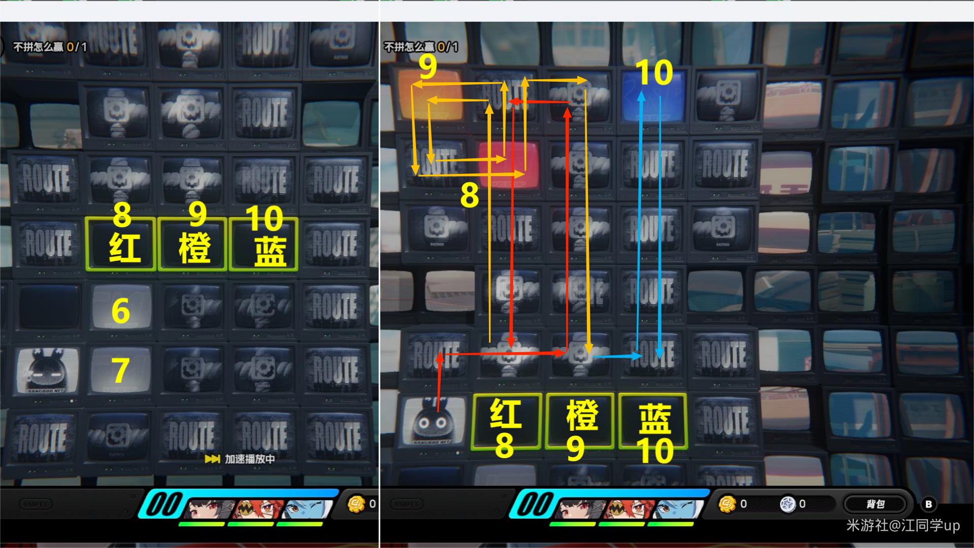 (5) 接着,按照下图的路线,像玩俄罗斯方块一样,把对应颜色的方块推到对应颜色的区域,再次解谜成功!给自己鼓个掌!