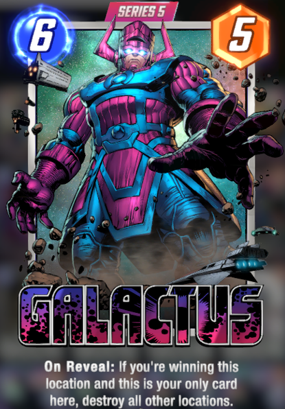 那么,在《漫威终极逆转》中,吞星又是如何“大快朵颐”的呢? 他的卡牌效果简单粗暴:“揭示:若你在此区域领先,且此卡牌是你在此区域中的唯一卡牌,摧毁其他区域”。