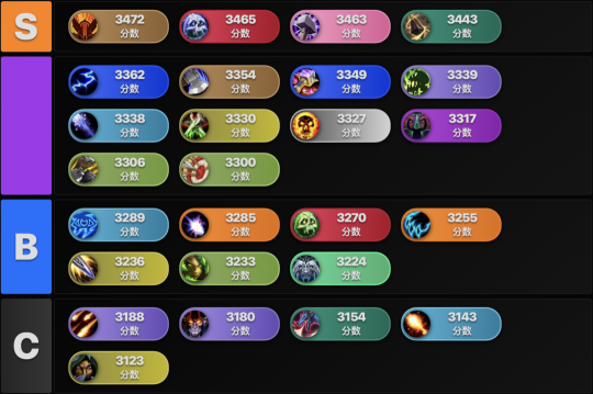 A级: 元素萨、武器战、增强萨、痛苦术、冰法、奇袭贼、暗牧、浩劫DH、兽王猎、射击猎:中流砥柱,表现稳定。
