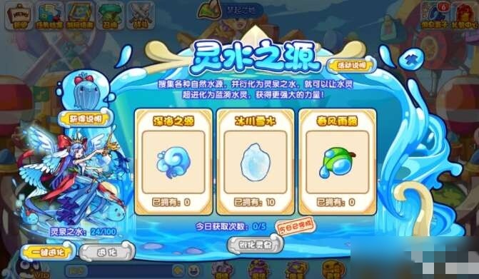 重点来了!当你的灵泉之水积攒到100点,就能解锁蓝漪水灵的超进化资格啦!是不是想想就激动?
