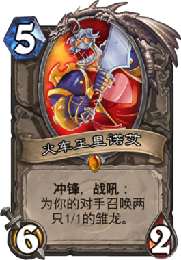相信就算很多不玩炉石的人都知道火车王的大名,实在是因为他的出场台词太灵魂了,不过台词可不能决定着强度,火车王是快攻卡组的最爱,导致低一级的鲁莽火箭兵都有了出场机会,火车王一般是拿来终结对手的,他的出场意味着敌人的死亡,同时也意味着难以言喻的满足感。