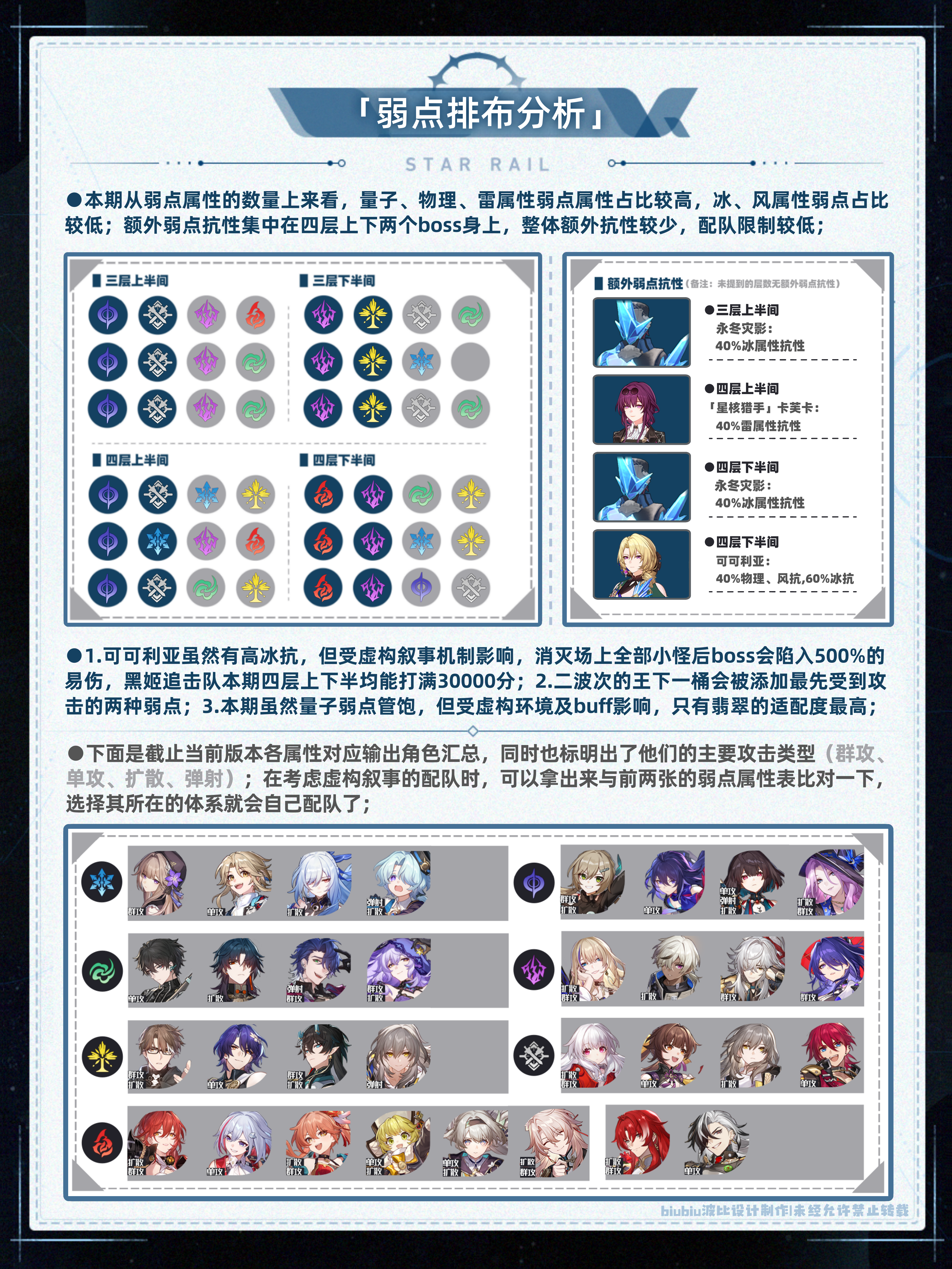 本期最耀眼的明星是谁?没错,就是银枝和翡翠领衔的队伍!他们简直就像开了挂一样,一路高歌猛进。当然,我们也不能忘了老牌劲旅——黑姬追击队,依旧坚挺无比!上下两层都能轻松拿下30000+的高分,简直是追击队的排面!另外,由于Buff的加持,终结技能量消耗低,释放频繁的希露瓦,在本期也摇身一变,成了平民玩家的通关利器!就算你只有一套全四星阵容,也能轻松过关!而且,地图上那多到让人眼花缭乱的物理弱点,也让咱们的云璃妹妹有了大展拳脚的机会!克拉拉也能跟着喝口汤,美滋滋!