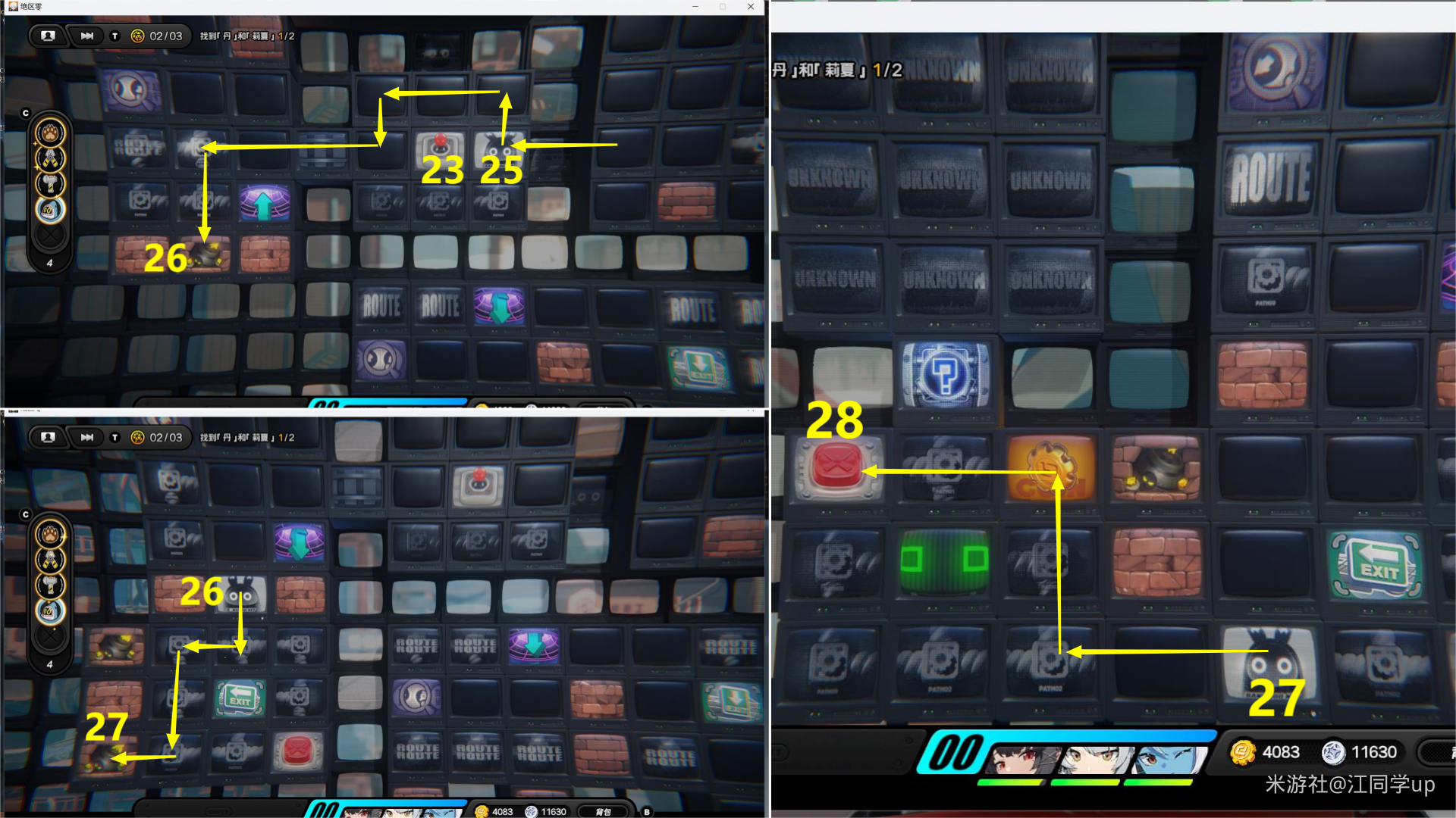 6. 区域25-28: 返回左边,在25区把23区的开关往左一撞,然后冲向左边的26区。撞开26区后,别犹豫,继续撞开下面的27区,最后到达28区。