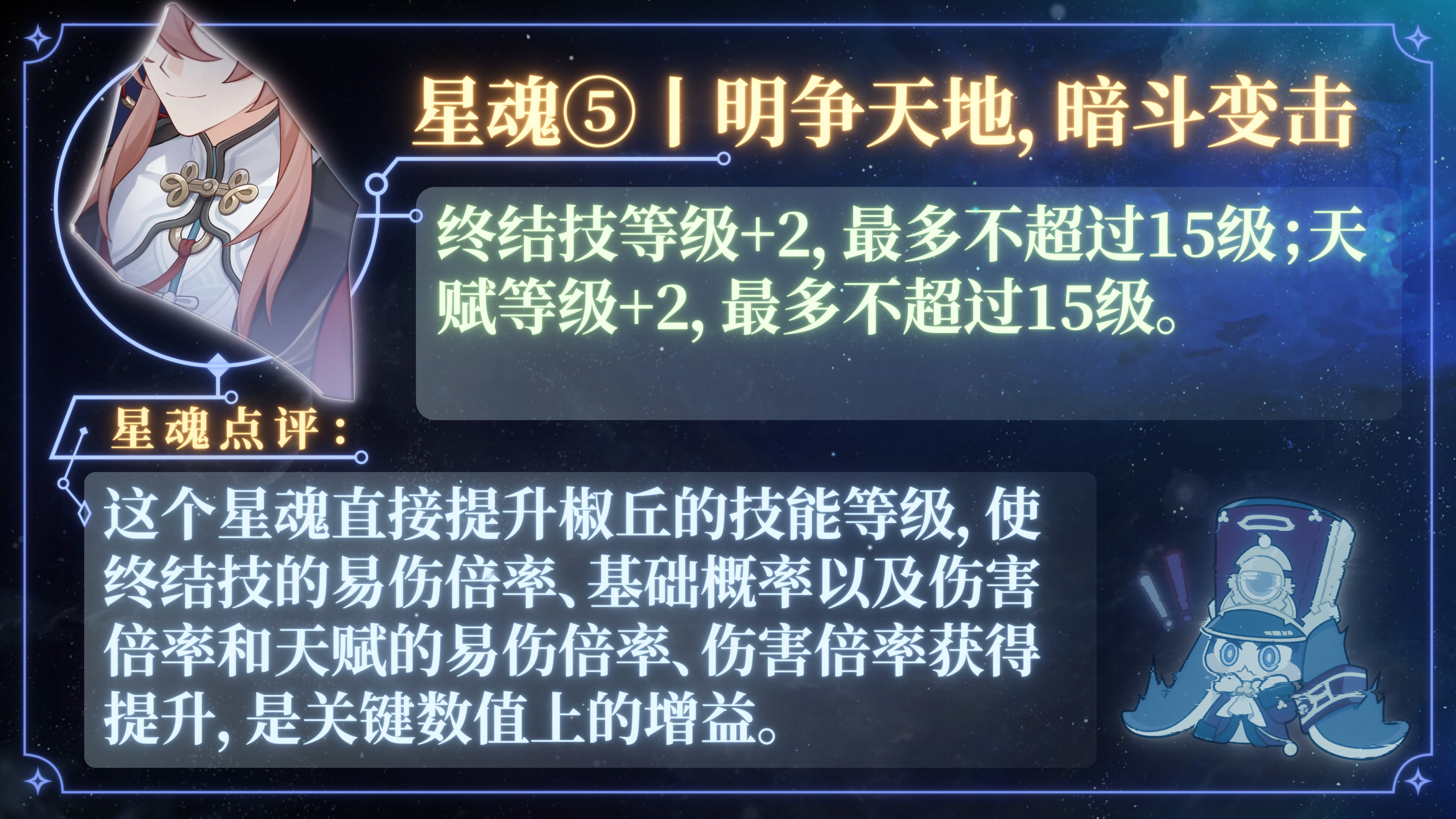 想把有限的资源用在刀刃上?那就记住:椒丘的核心竞争力在于天赋和终结技! 战技和普攻嘛,升不升级就看你心情了,反正提升的只是那点可怜的直伤倍率。 如果你是个精打细算的小能手,那就把资源留给更重要的地方吧!