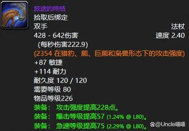 现在这服务器里,感觉遍地都是小猎人和德鲁伊。尤其是德鲁伊,不是熊T就是鸟德,双修玩家简直不要太多!所以,这件“旅途的终结”简直就是为他们量身定做的!如果你也是其中之一,别犹豫,闭着眼睛也得给它拿下!毕竟,谁不想在艾泽拉斯大陆上,更潇洒地浪呢?