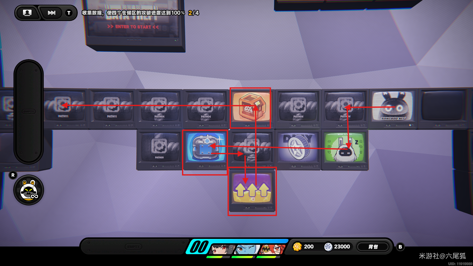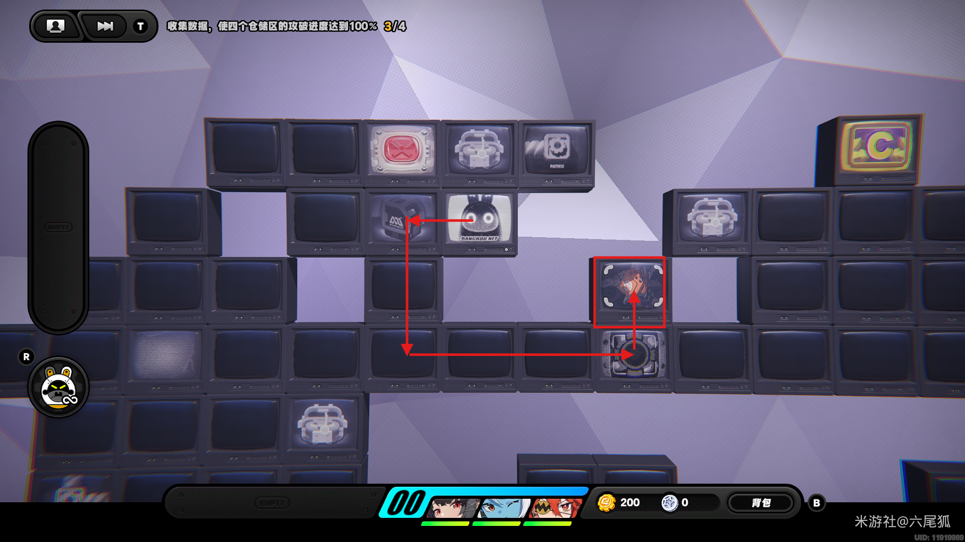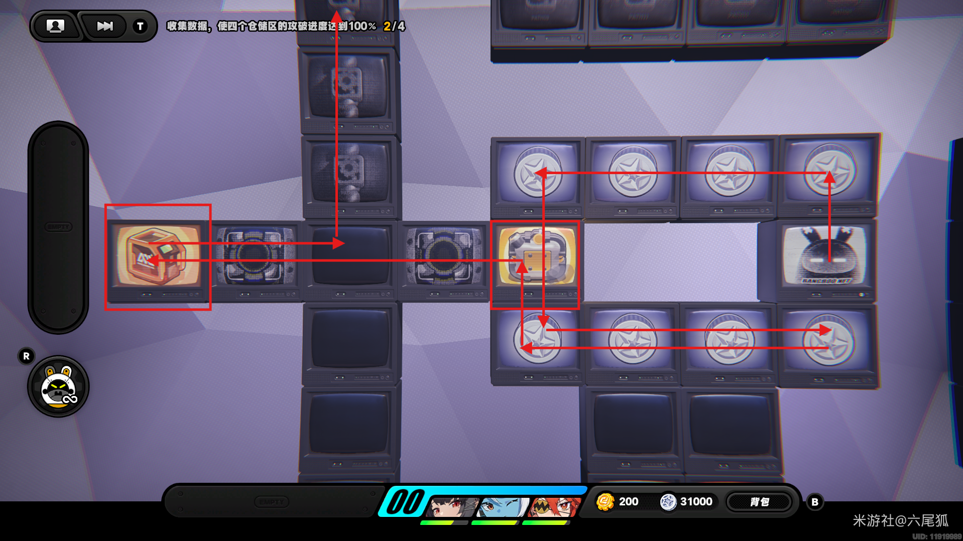 继续往下前进,注意!前方高能预警!这里有一种盾牌厚到令人发指的怪物,别跟它硬刚,直接把它推到围栏边上,来一波华丽的地图杀!接下来是一个推箱子的小游戏,不过这次的箱子变成了圆滚滚的球,一不小心就会滚到边缘。别慌,解锁推车后,按照下图所示的方法堵死,就能再次成功捕捉丁尼邦布!(当前进度:仓储区C 20%,仓储区C物资箱 5/30,物资箱总进度 56/130)