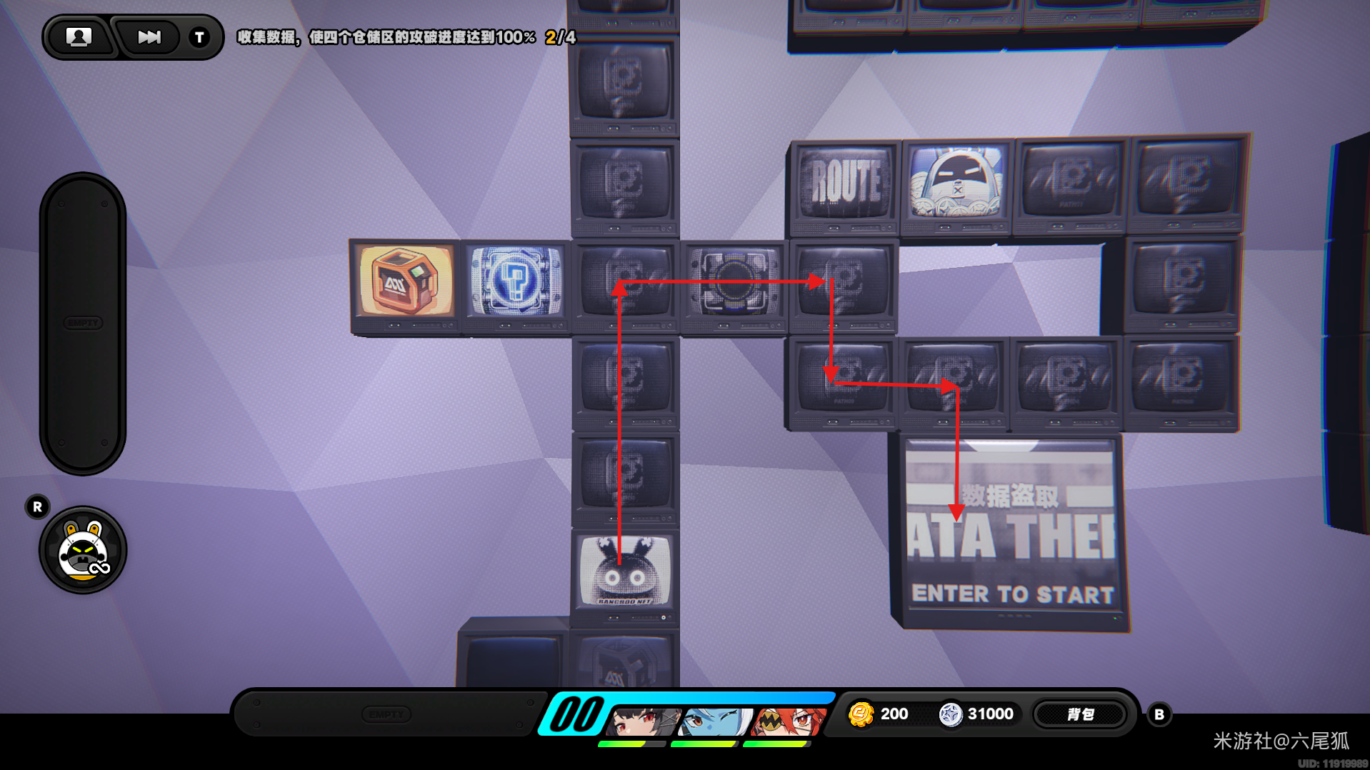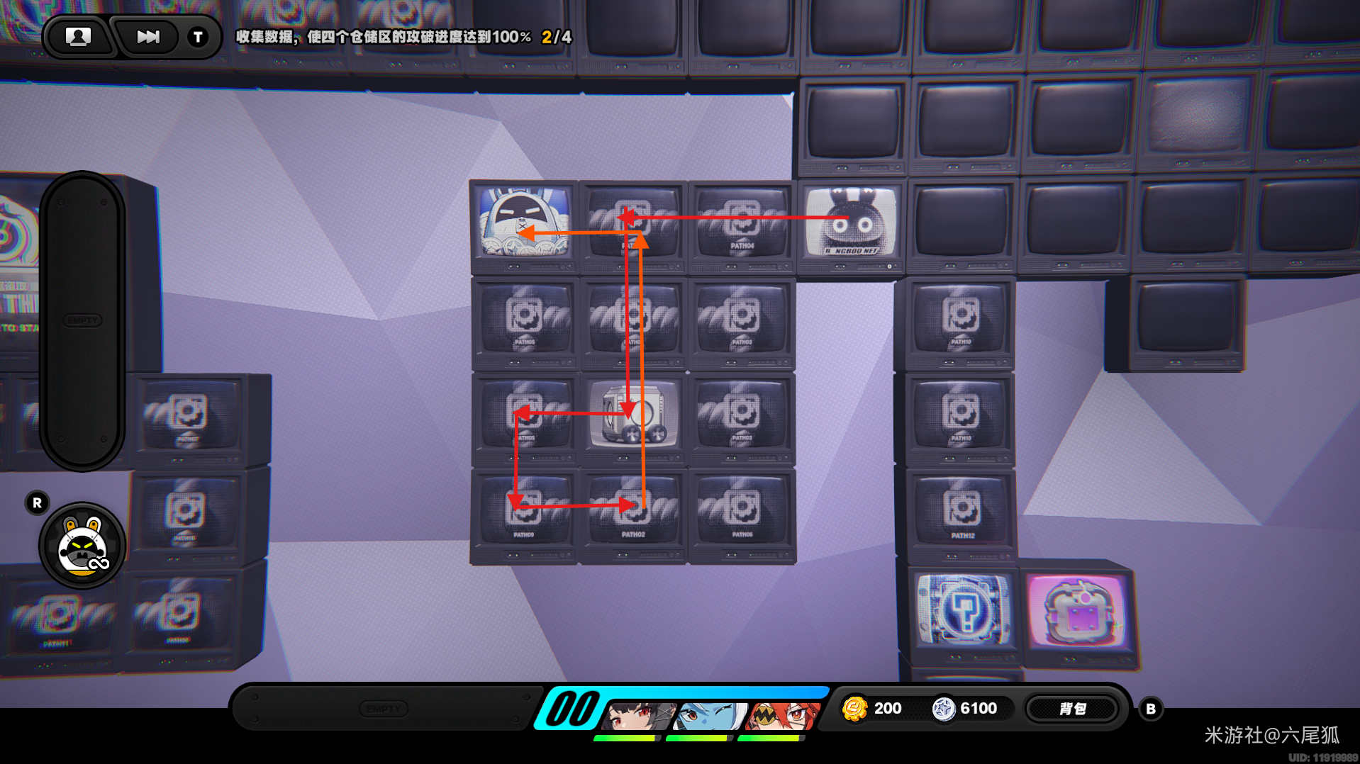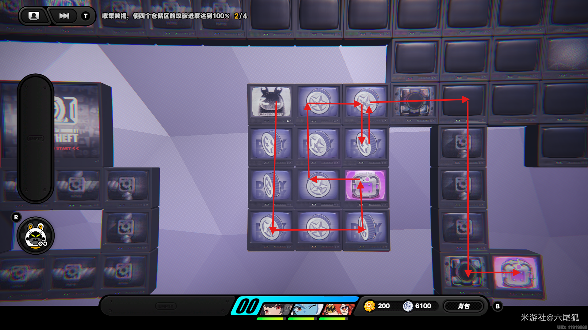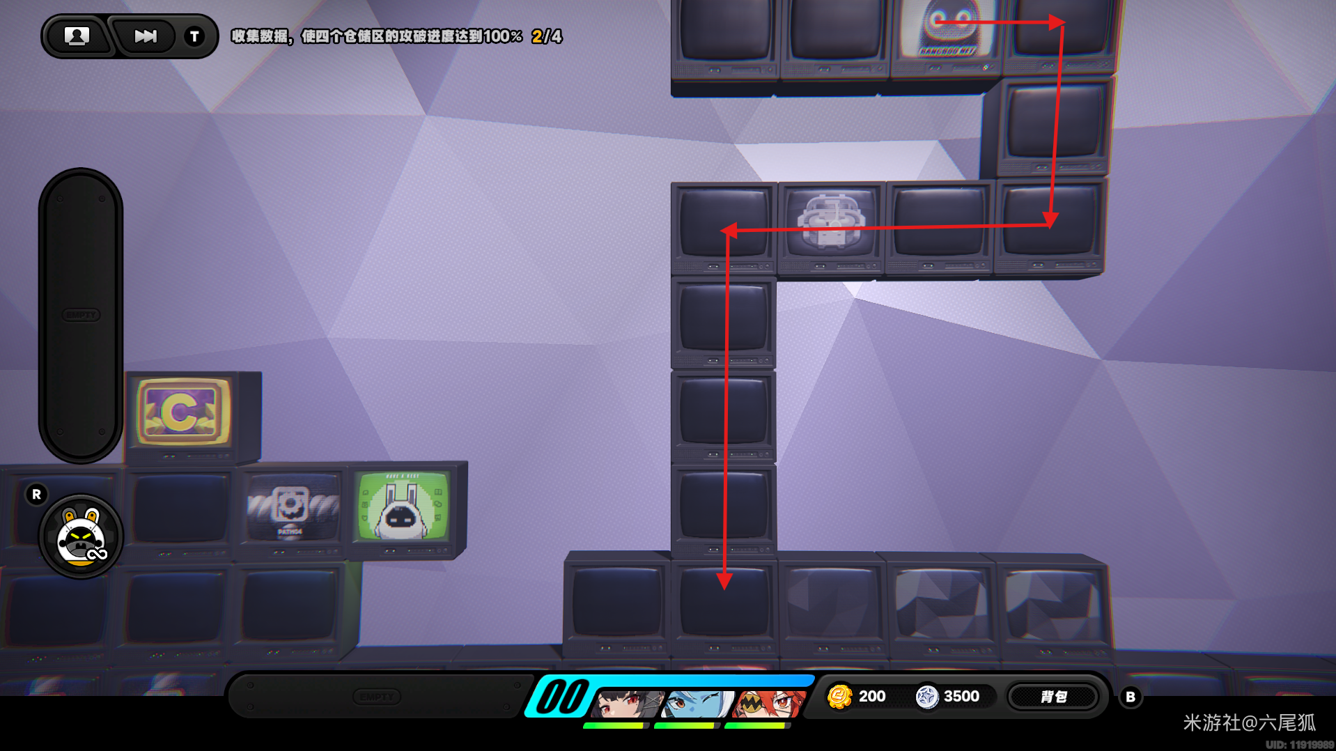 继续往下前进,注意!前方高能预警!这里有一种盾牌厚到令人发指的怪物,别跟它硬刚,直接把它推到围栏边上,来一波华丽的地图杀!接下来是一个推箱子的小游戏,不过这次的箱子变成了圆滚滚的球,一不小心就会滚到边缘。别慌,解锁推车后,按照下图所示的方法堵死,就能再次成功捕捉丁尼邦布!(当前进度:仓储区C 20%,仓储区C物资箱 5/30,物资箱总进度 56/130)
