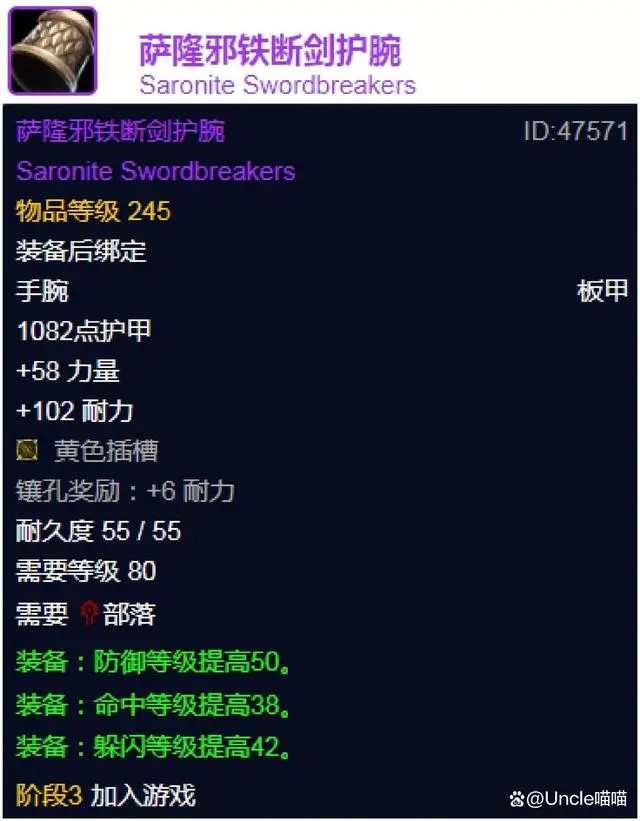 铛铛铛!闪亮登场的就是这款由辛勤的锻造大师们呕心沥血打造的——萨隆邪铁断剑护腕!