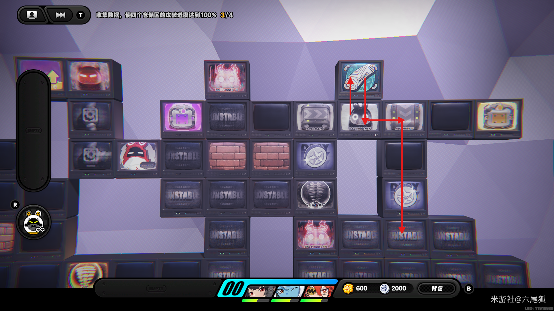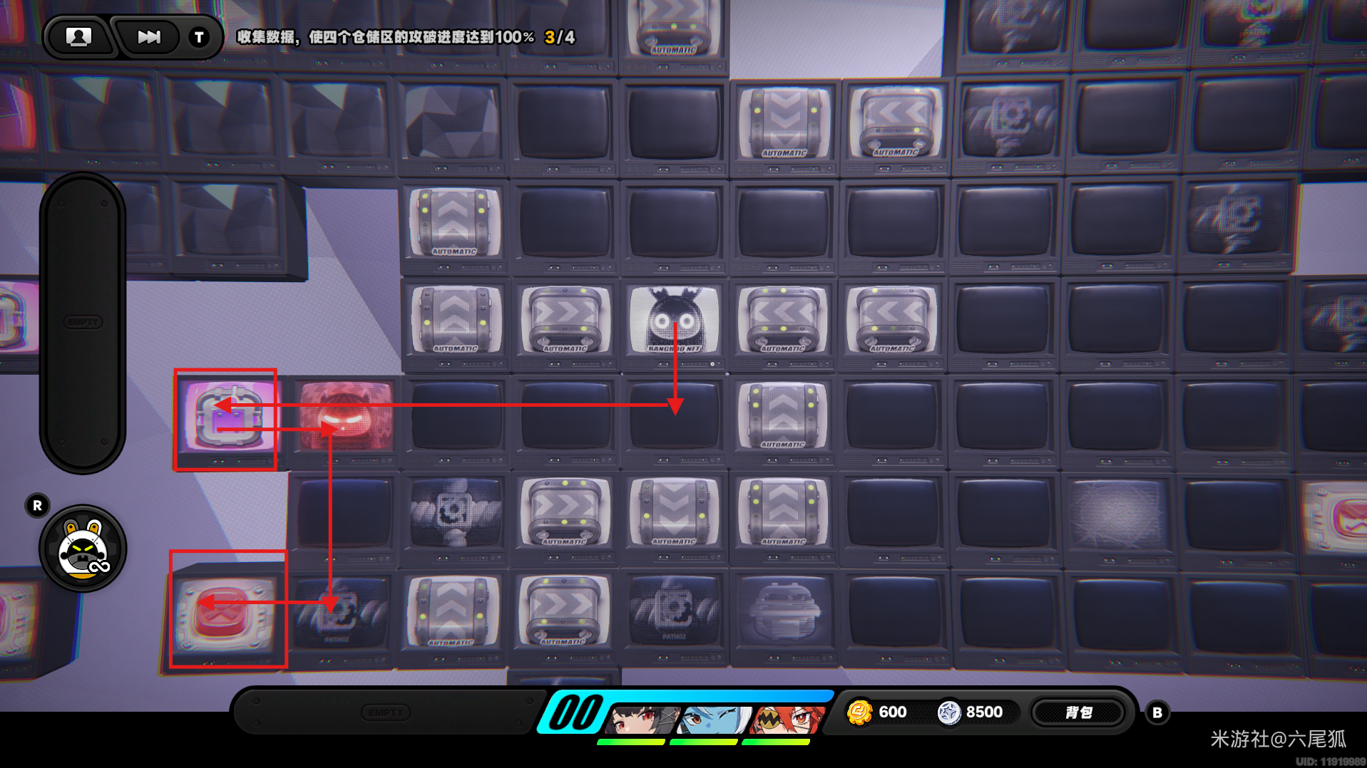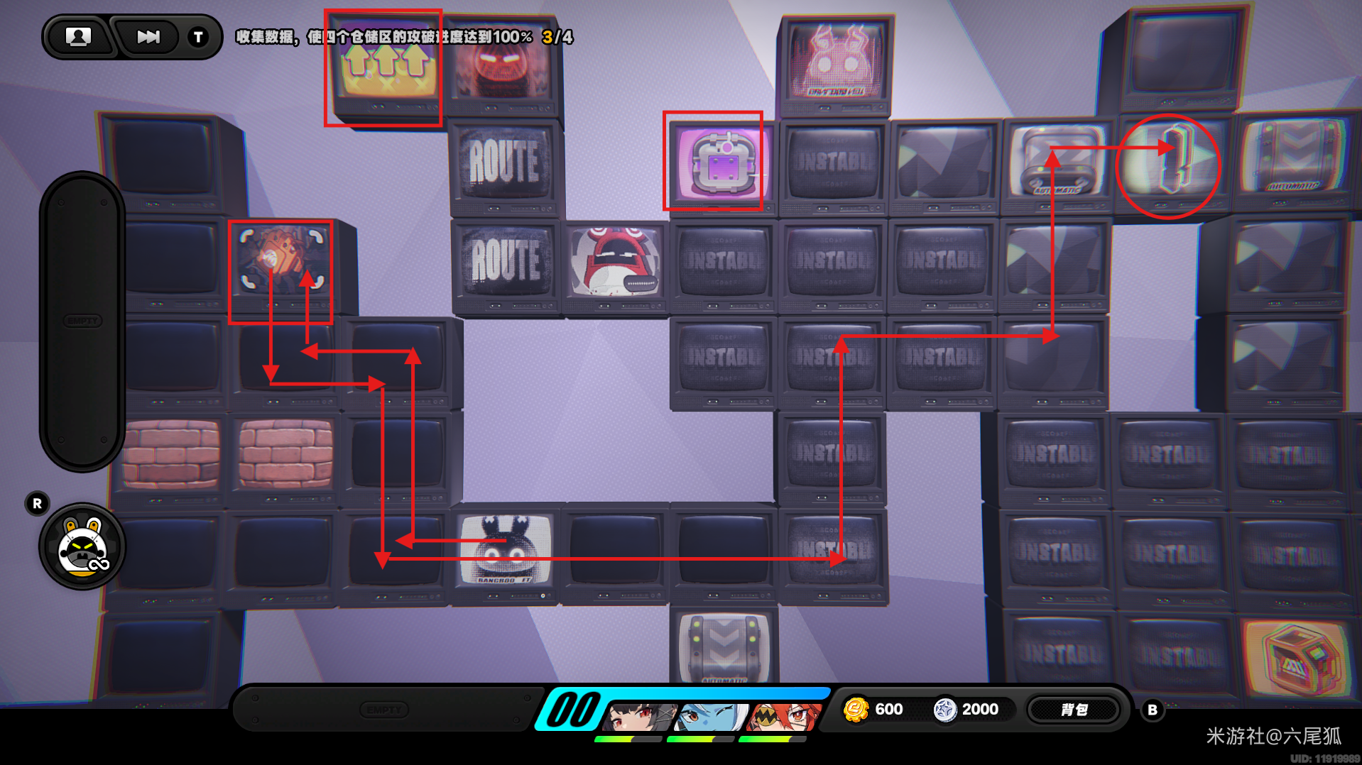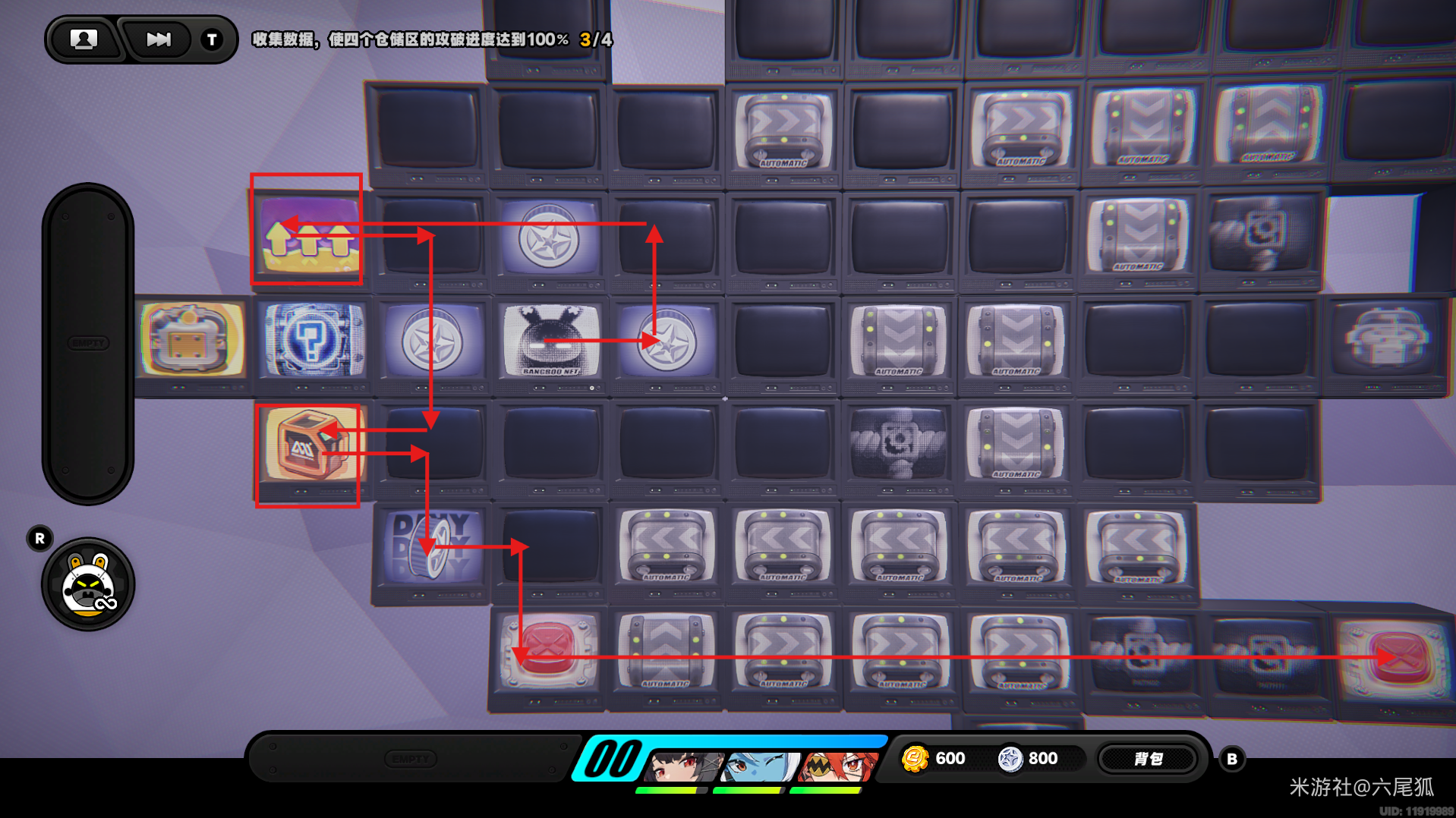 返回上方,在圆圈处使用增幅仪,这次的选择题答案是:2自恋邦布!(仓储区D进度100%,物资箱25/30,钥匙4/4,总物资箱进度106/130)