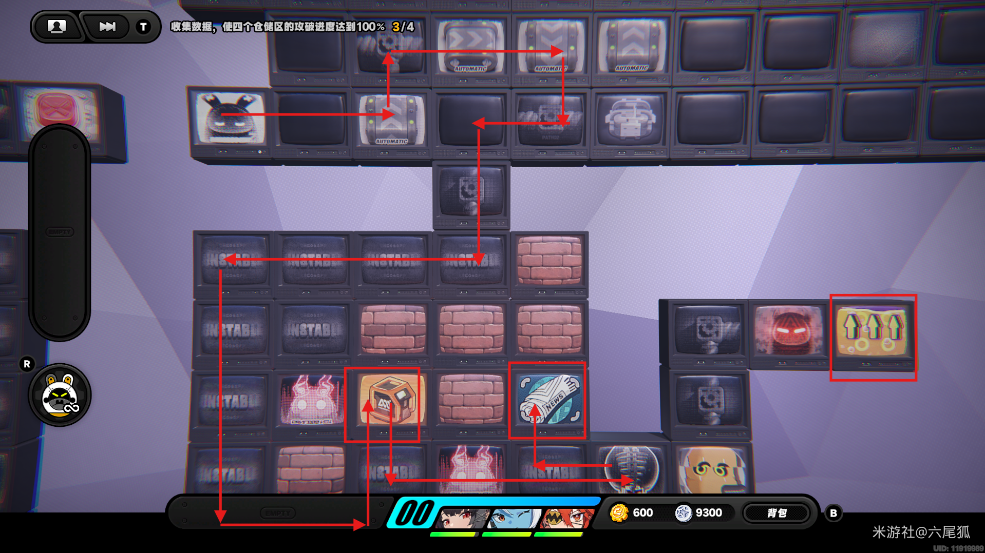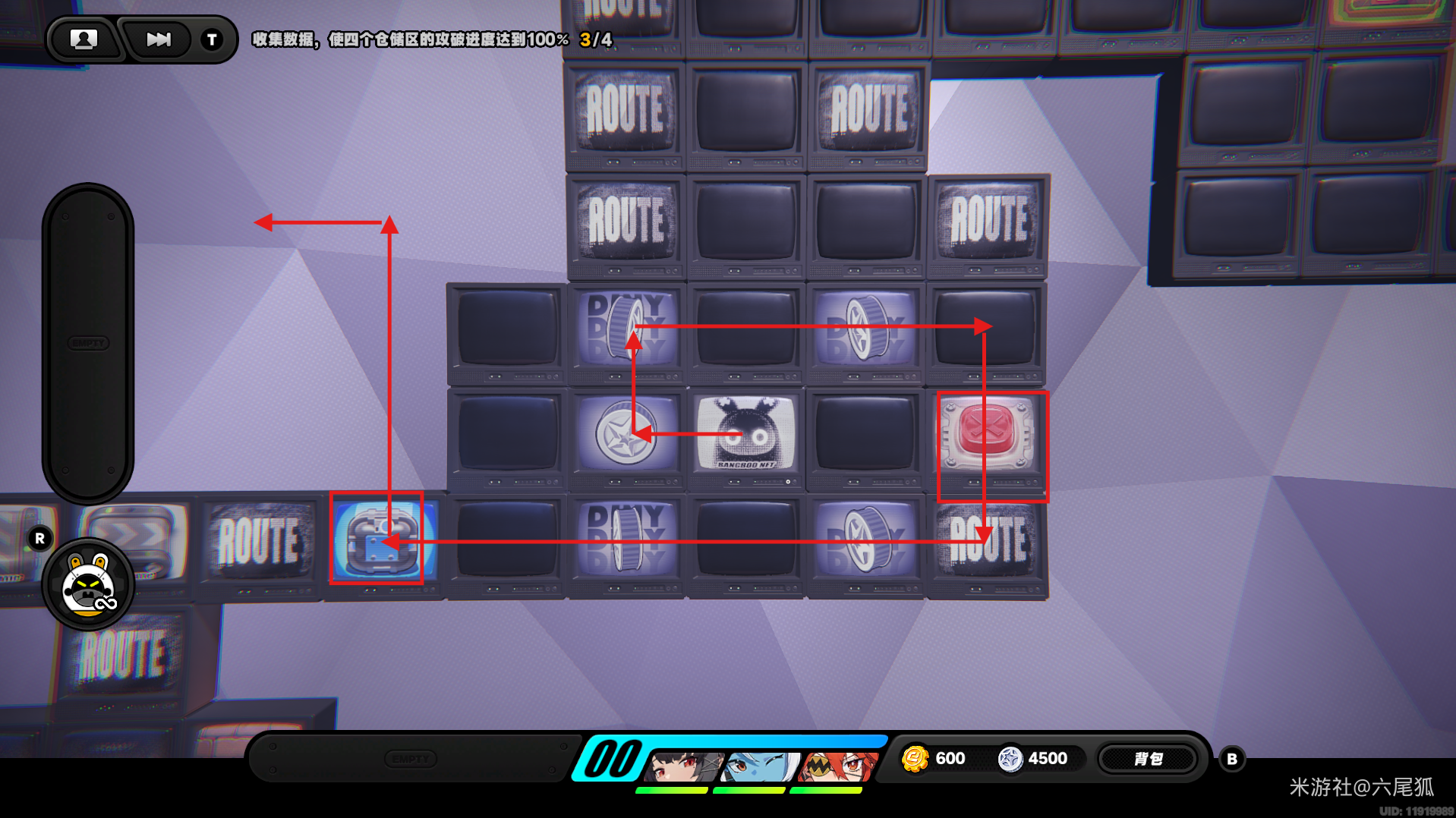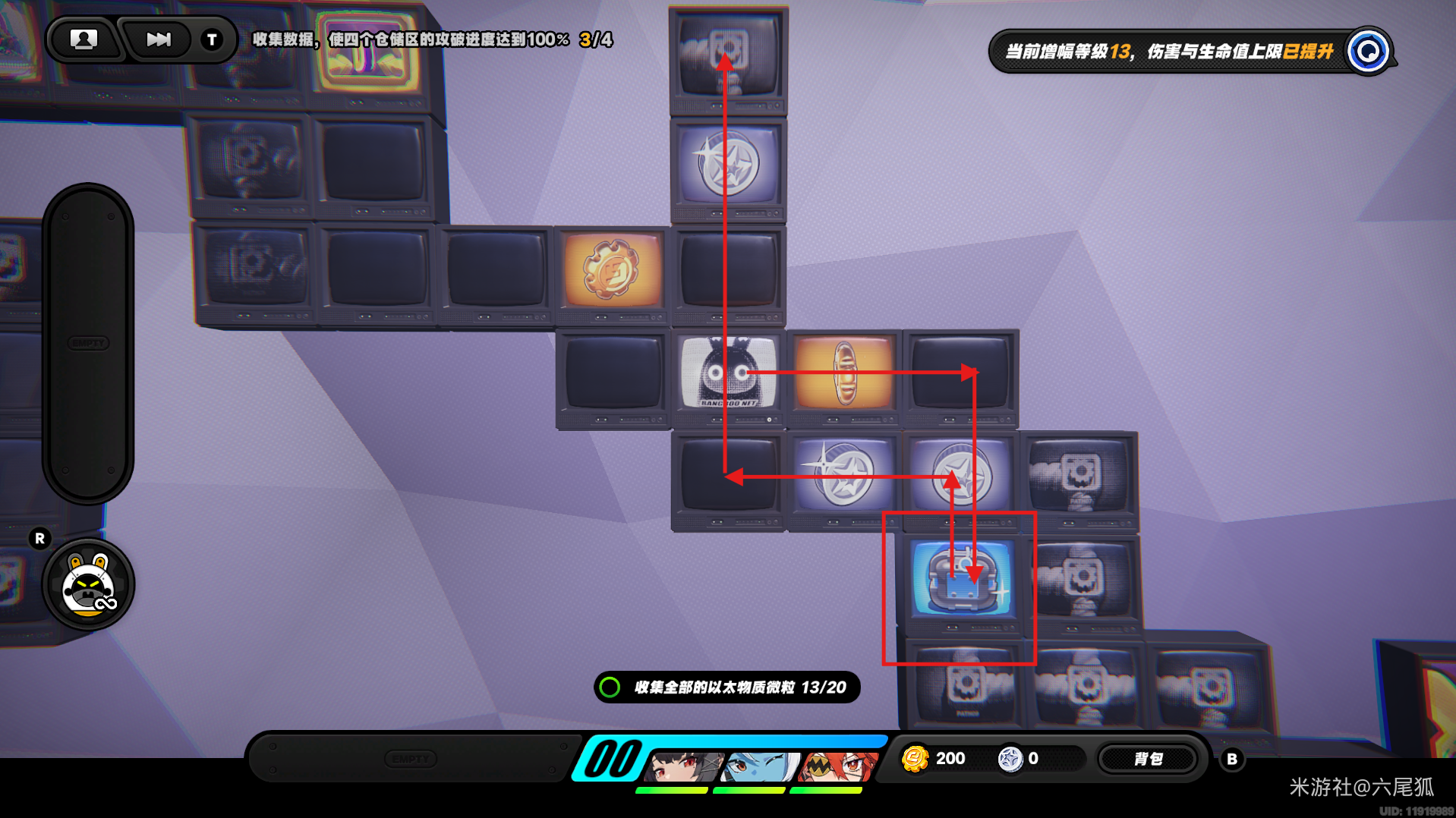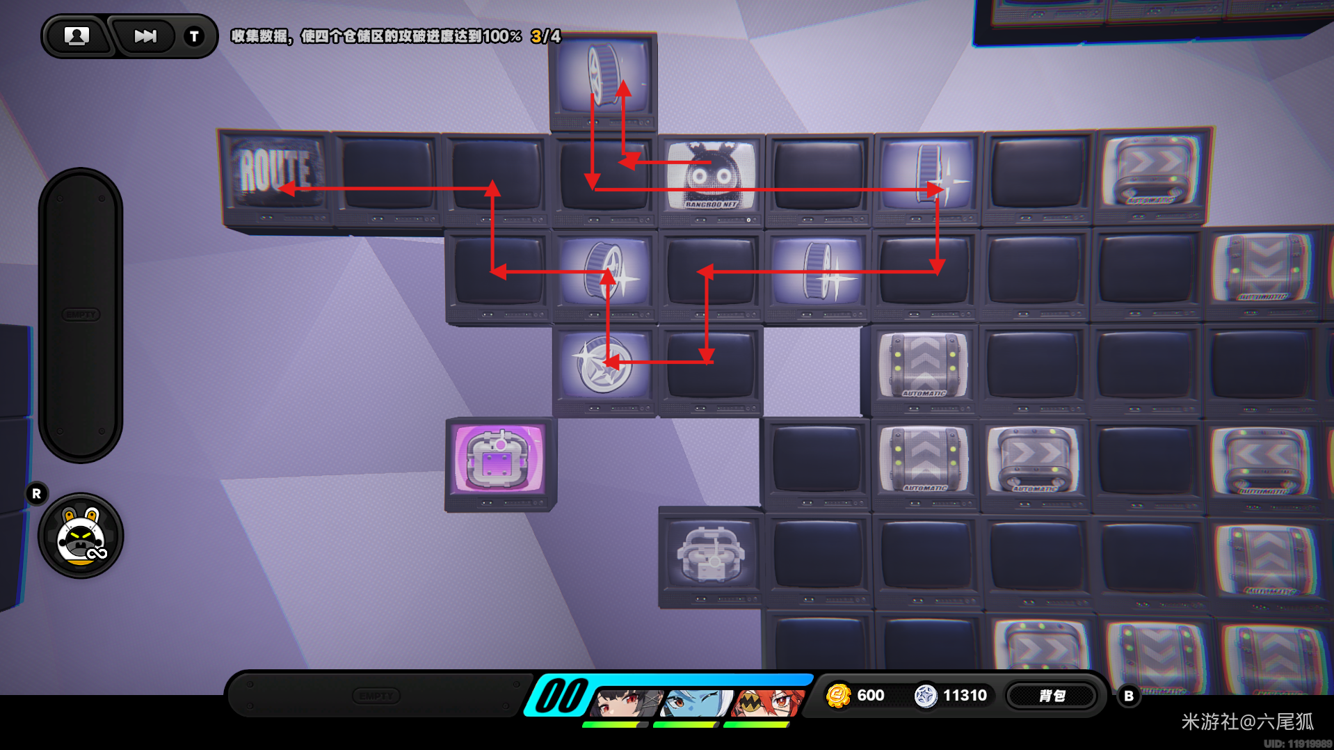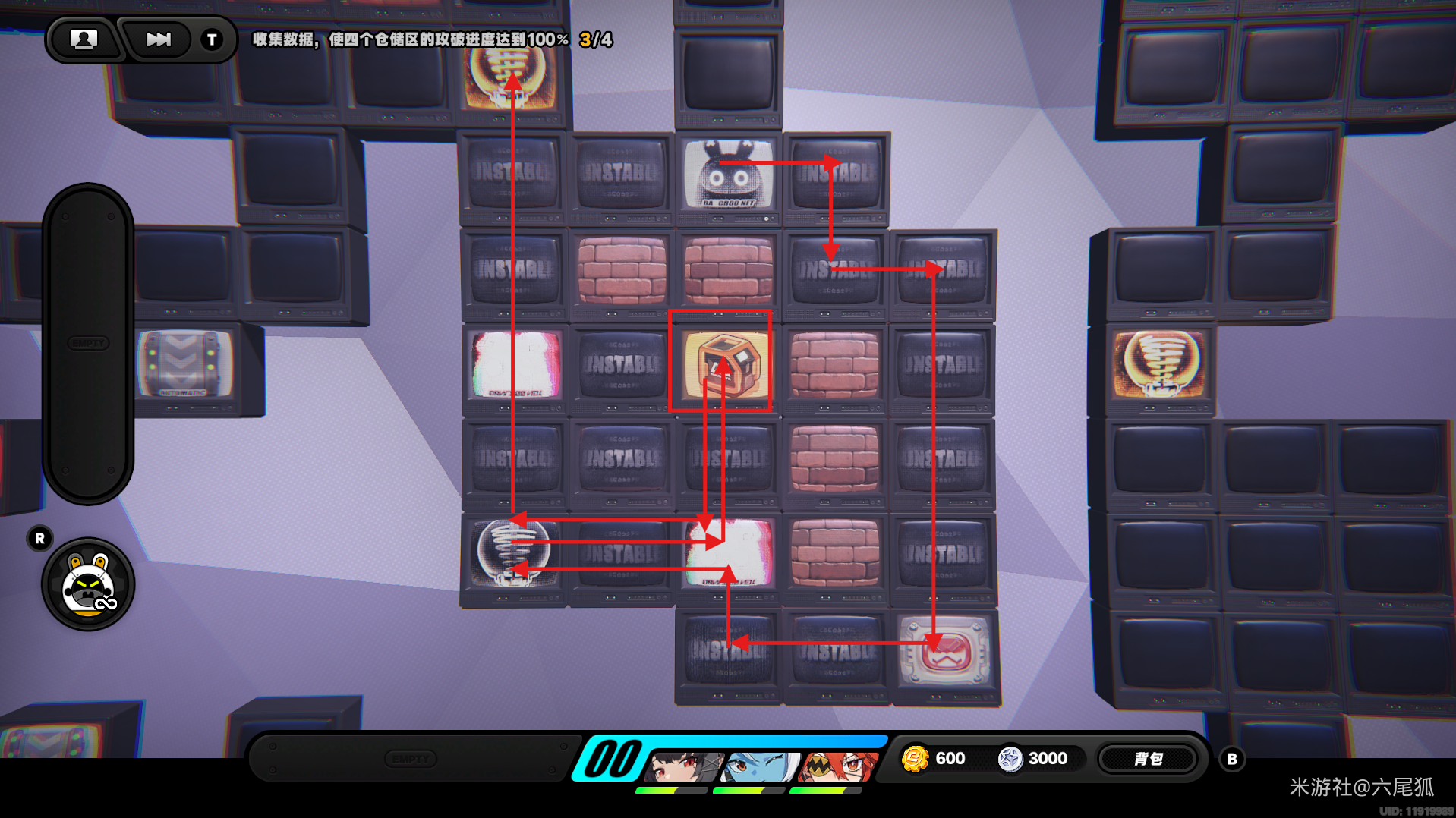 返回上方,在圆圈处使用增幅仪,这次的选择题答案是:2自恋邦布!(仓储区D进度100%,物资箱25/30,钥匙4/4,总物资箱进度106/130)
