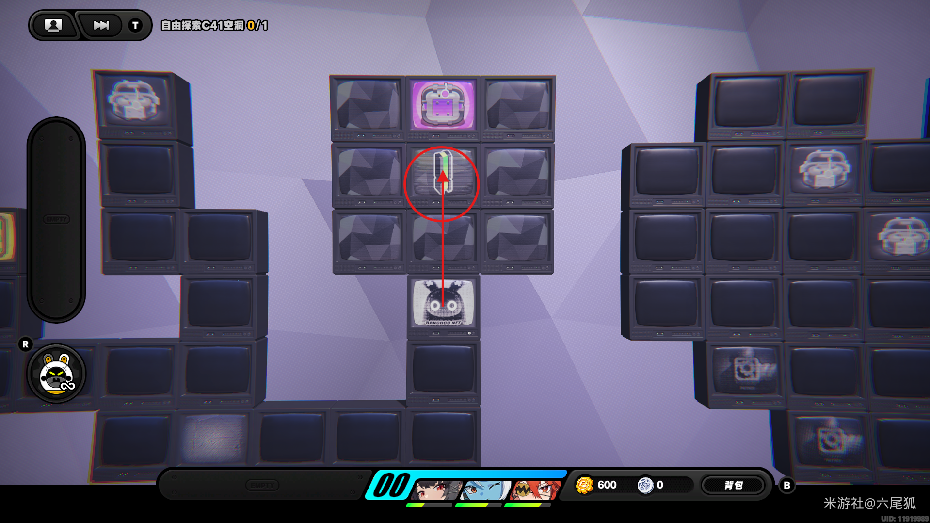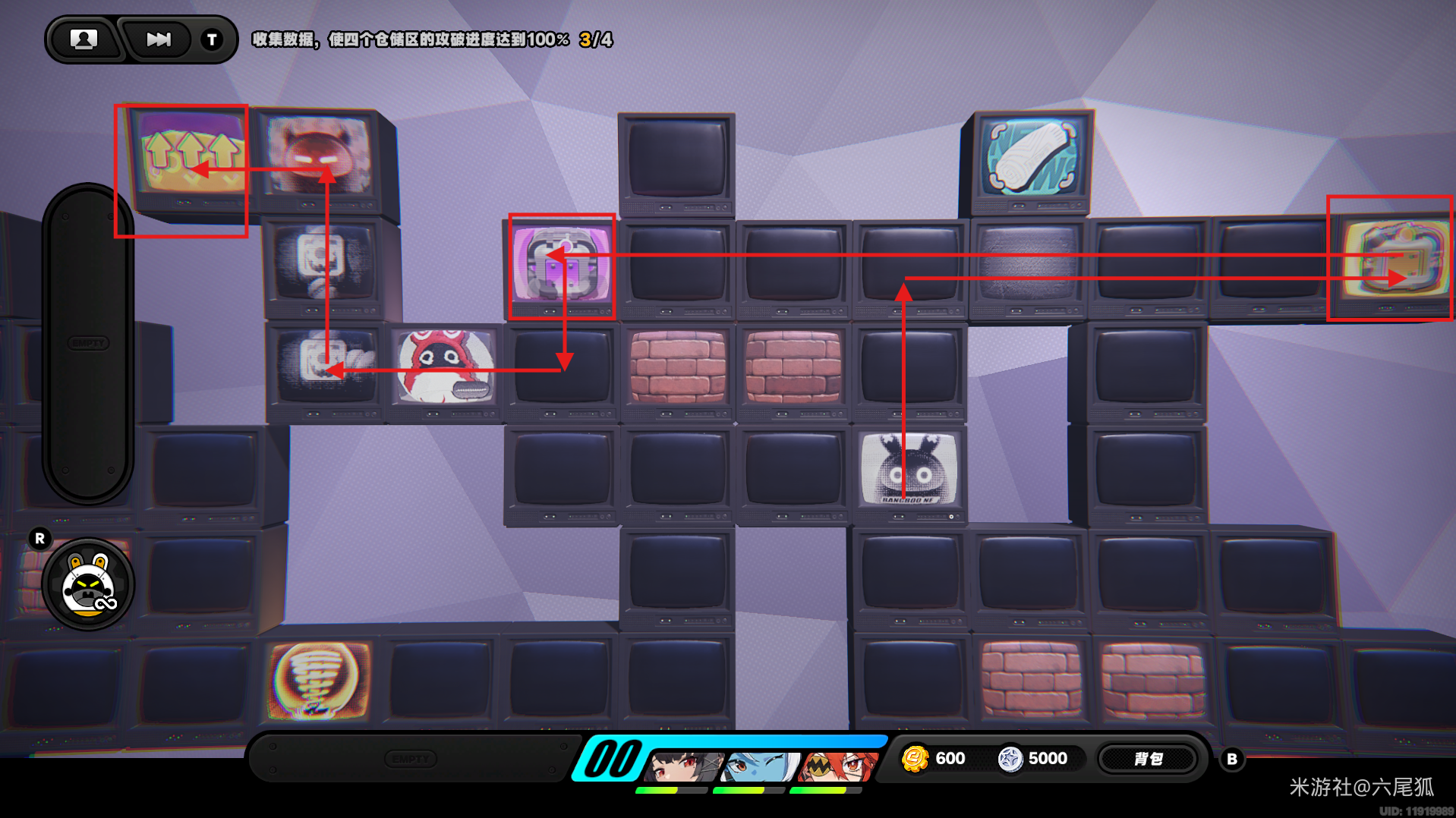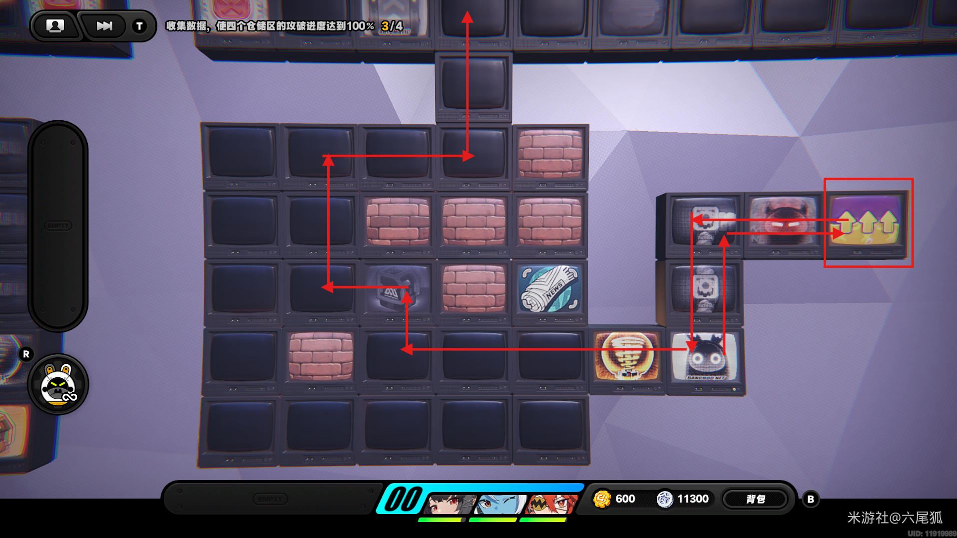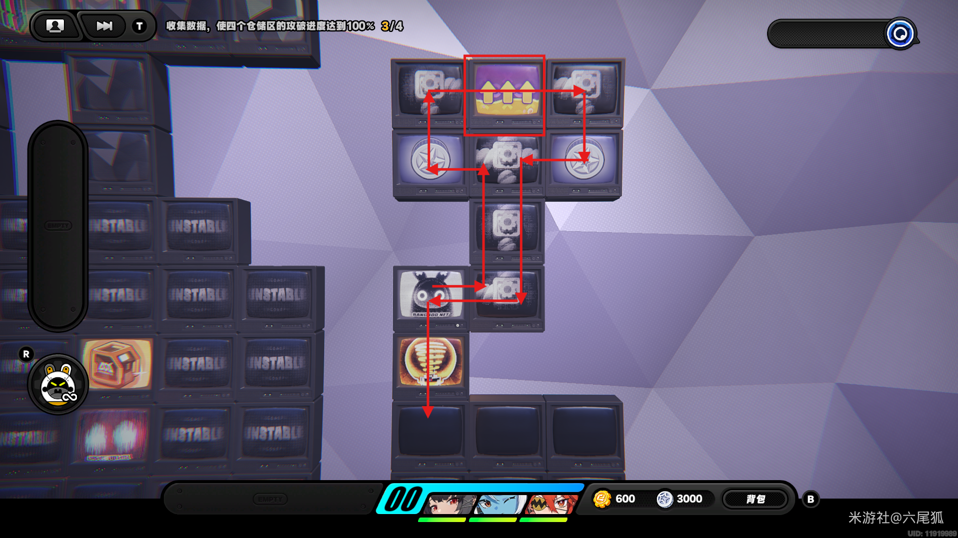 返回上方,在圆圈处使用增幅仪,这次的选择题答案是:2自恋邦布!(仓储区D进度100%,物资箱25/30,钥匙4/4,总物资箱进度106/130)