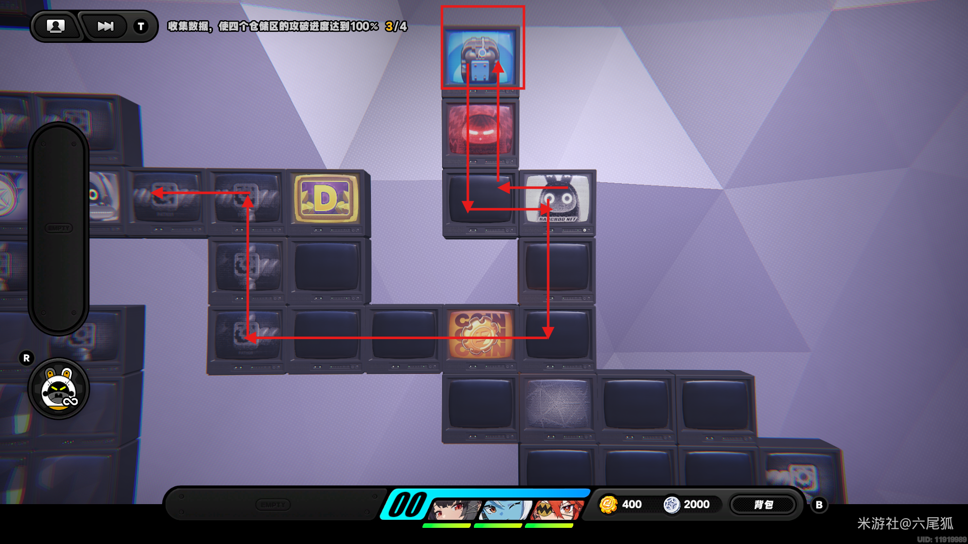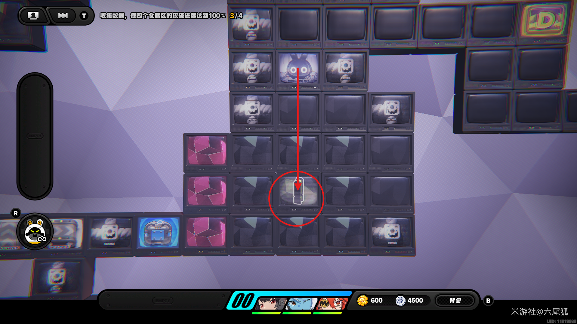 绕一圈继续向下,在圆圈处使用增幅仪。这次邦布会问你问题,答案是:3仲夏集团!答对了,继续前进!(仓储区D进度40%,物资箱5/30,钥匙2/4,总物资箱进度86/130)