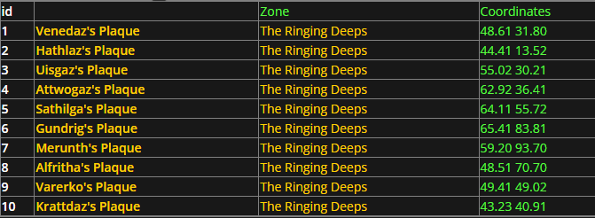 别担心,我已经为大家准备好了藏宝图!以下就是这10个铭牌的准确坐标,拿着它们,你就能像寻宝猎人一样,在艾泽拉斯大陆上快乐地奔跑啦!
