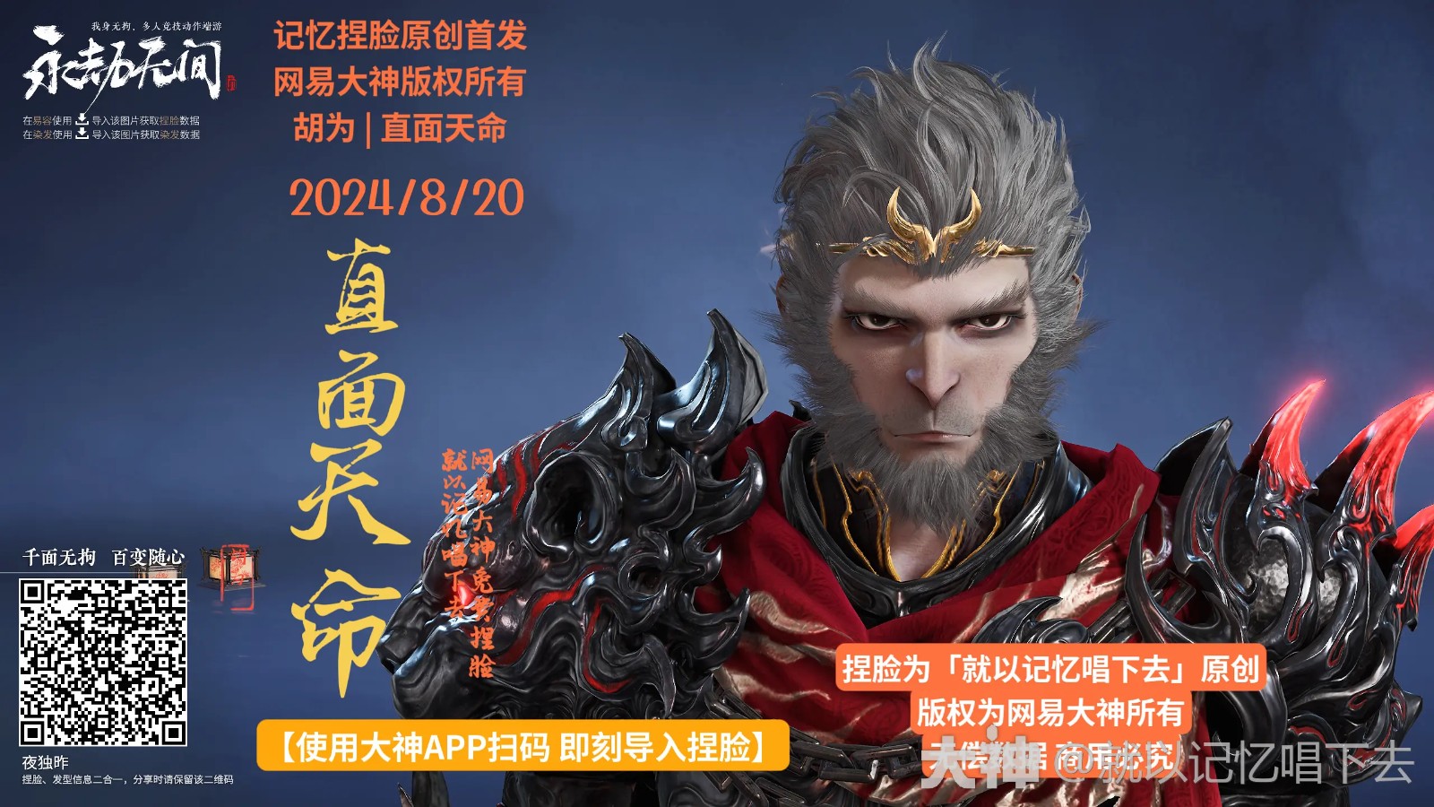 今天,就给大家带来一份特别的礼物:胡为天命人捏脸二维码! 没错,就是那个“我命由我不由天”的狠角色!
