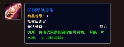 使用“深渊呼唤号角”后,它就会乖乖地躺进你的玩具箱啦!接下来,你就可以随时随地召唤一片水域,让你的小伙伴们惊呼“哇哦”! 不过,别太贪心哦,这宝贝可是要休息一个小时才能再次施展魔法的!