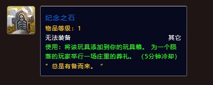 使用效果:有了它,你就可以在任何地方,随时随地,为那些不幸阵亡的玩家(或者NPC,甚至小动物...只要你愿意)举办一场充满(并不一定)庄严气氛的葬礼!五分钟冷却时间,让你想“致敬”谁就“致敬”谁!以后团灭了,别光顾着骂人,赶紧掏出纪念之石,搞个仪式感,说不定还能稳定军心呢!