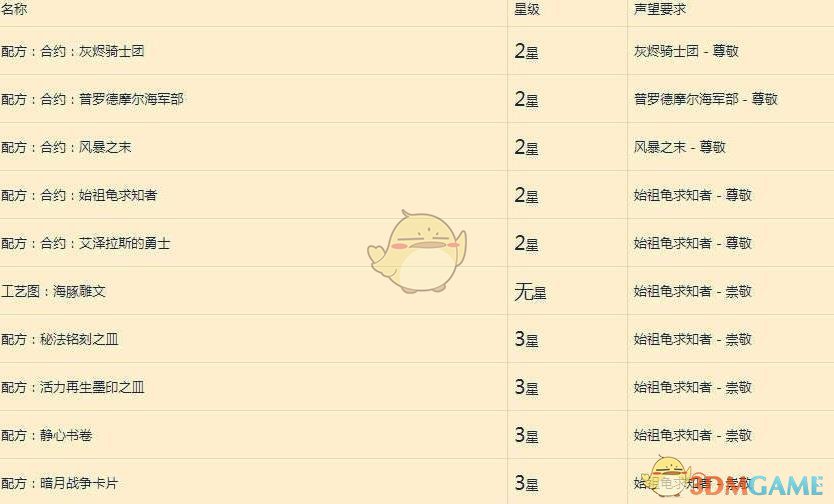 达到尊敬声望时,可购买对应军需官出售的2星图纸;达到崇敬声望时,可购买对应军需官出售的3星图纸。