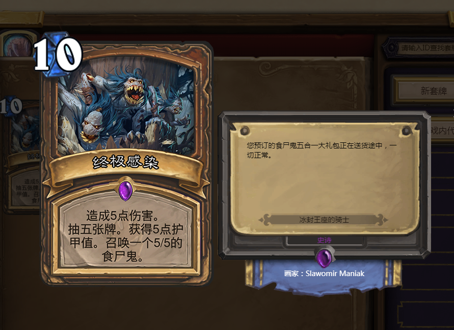我们在使用了星界沟通后就没有手牌了,而终极感染则可以为我们提供我们需要的铺场解场以及手牌,这正好都是我们需要的,而且我们牌组中还剩下不少的没太大作用的法术,终极感染也可以一下过几只随从保证我们如果哪一回合抽到法术的话,我们也有随从可以使用,保证场面不断。