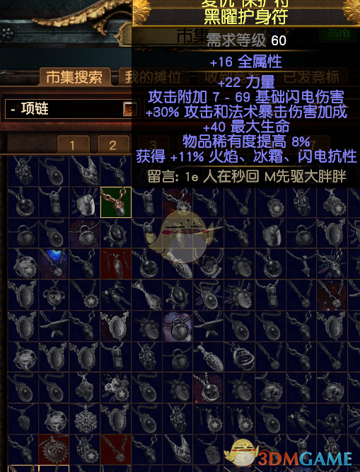 项链:生命+暴击+爆伤,最好还能有条抗性