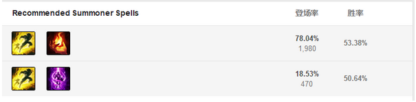 在召唤师技能方面:闪现+点燃。其他选择都比较多余,如果对面有卡牌可以考虑传送。