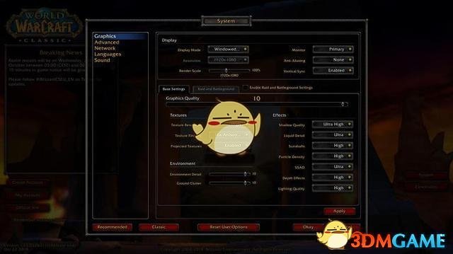 暴雪看起了在怀旧服的图形设置上把大灾变的液体细节和熊猫人之谜的屏幕空间环境光遮蔽(SSAO)都引入了怀旧服,而且我们也可以看到游戏分辨率,有1080P的选项,也证实了怀旧服是用了新引擎重做的,这就比不可描述服要高大上许多了。