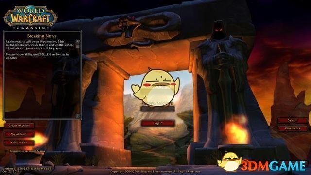 这个就是怀旧服的登录界面,跟10多年前的登录界面比起来只是在魔兽世界的logo下多了“classic”(怀旧服)几个字。