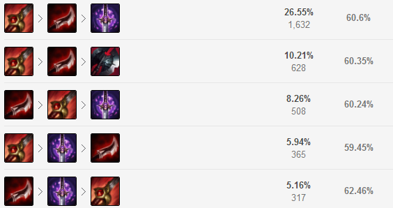 因为是打野位置所以打野装备是必不可少的,首先要先野刀,狮子狗这类英雄比较适合出减冷却的出门,因为有符文的被动,让狮子狗的GANK能力非常的强,接着就作出幕刃,这个时候狮子狗装备的就差不多可以去到处抓了。第三件装备小编推荐作出黑切、或者幽梦,这让狮子狗的爆发能力更强。