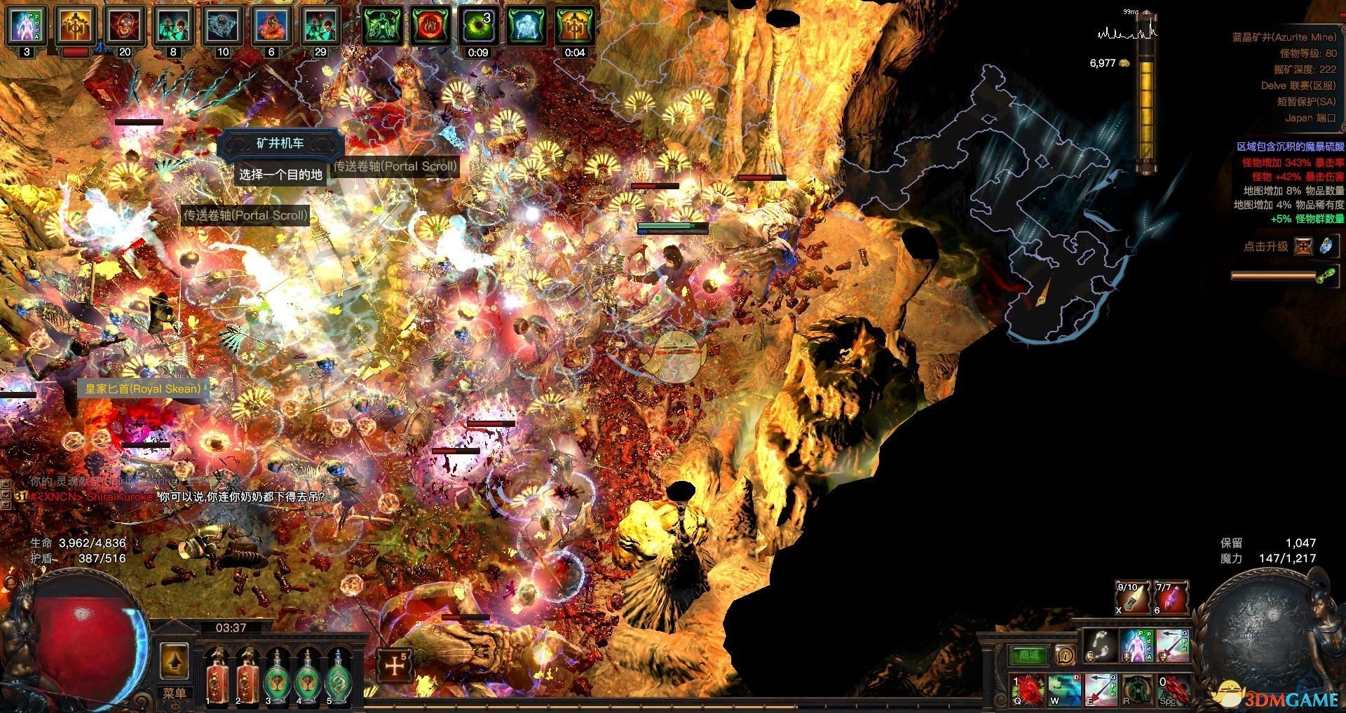 另外,这个BD稍微调整一下,就有很强的下矿能力:选择高输出的主流幽魂,比如军卫/雷电法王/图腾怪/食火者,其他杂鱼(火灵、骷髅、僵尸、幻影)连上各种妨碍效果,也就是致盲/击退/嘲讽,想象一下,茫茫多的召唤物都能造成各种妨碍效果,你又站在召唤物海中间。