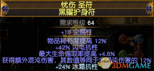项链选用黑曜长老底子的最大生命偷取率+额外混沌伤