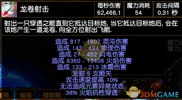 武器6连龙卷射击+武器元素伤害+元素集中+火焰穿透+高阶多重投射+满血攻击伤害