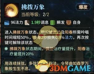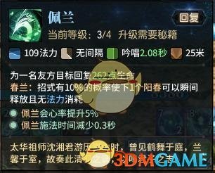 妙法的主要回蓝手段,CD由原来的240s减为150s,回蓝量由原来的75%改为45%(2级),一般我会在用了50%+的时候就用这个技能,这样不会显得捉襟见肘。