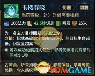 三叠:对具有自己施加的护盾目标施展佩兰或阳春时,招式治疗效果提升10%。乍一看搭配高山可以有一瞬间的爆发治疗,但是一是高山现版本蓝耗过高,二是你的护盾存在时间不定,可能被BOSS一巴掌就拍没了,所以不是很推荐,不过救急时可能有奇效。