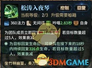 最低的蓝耗,可观的治疗量,最长的CD。反正全员掉血的时候肯定会用,其他时候也没啥机会。不过等拿到秘籍升级后,倒是可以CD好了就用,因为可以回蓝。