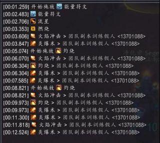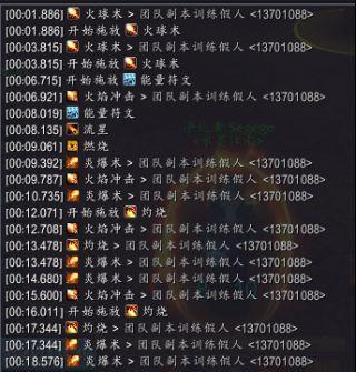 裸燃烧的难点在于,你需要在 灼烧+火冲+炎爆+炎爆 这个小循环中,把火冲2和火冲3压到无限接近于灼烧读条完毕打出,让火冲4有更大的可能接上(图中可以看出,火冲3-火冲4的间隔是2.997秒,非常极限)。这样非常容易失误,容易导致灼烧的括号先返还,火冲的括号被吞。但是如果打的太早,就会导致火冲4接不上,见下图: