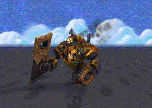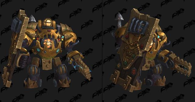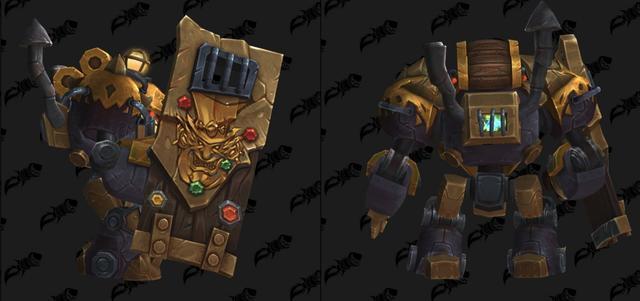 关于这个坐骑的描述是这样的,加里维克斯在战斗中,他那镀金的死亡机器跑到了梅卡托克手中,而且它夸张地表现出了极高的地精科技天赋,在风格上和梅卡托克还很搭。
