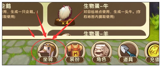 2.仓库下方有一个“坐骑”按钮,点击进入;