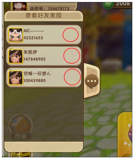好友家园可以从左边进入,好友家园需要照顾时头像右边会有水滴的图标,点击即可进入好友家园给好友植物浇水、抓虫了。