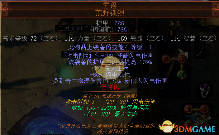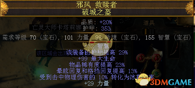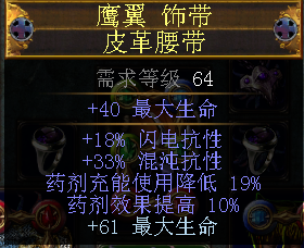 腰带:必须有的属性是 10%药剂效果 20%减少充能使用 混沌抗性有最好 增加持续时间有最好