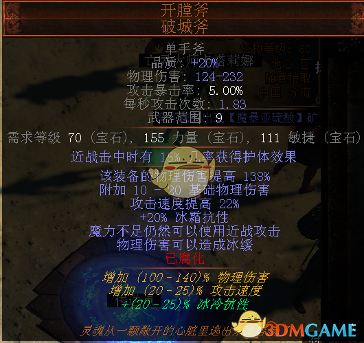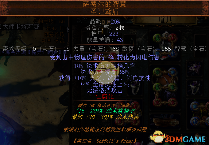 盾牌:圣记盾 腐化物理转元素8% 切记少一点都不行 技能连法 受伤-号召-巨石魔像