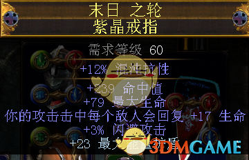 手套:毒化+快速攻击 双技能长老手 +生命和+混沌抗性必须其它随意 技能连法:熔岩之击20-先祖20-多重20-击中回复20