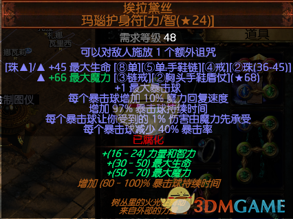 BD中心思路:全魔力天赋装备配置+领主之环第六条词缀=无上限伤害叠加!