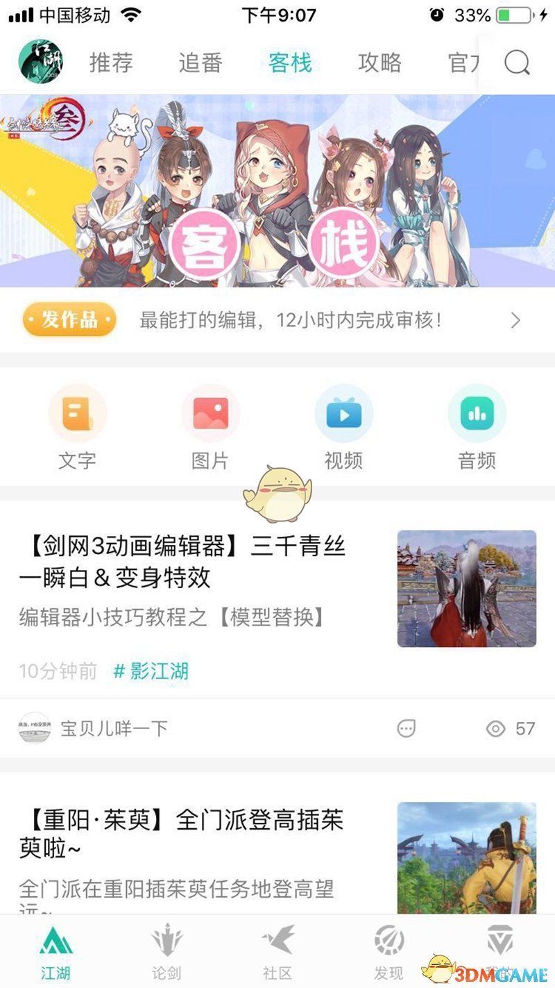 同时,客栈投稿《江湖Daily 》App客栈版区重新装修,新增四大类内容分栏,惊艳截图、唯美手绘、脑洞剪辑、趣味段子。侠士想看的内容都在这里!假如侠士身怀才艺,也不妨在此秀出您的优秀作品,《江湖Daily》将会助力侠士登上大唐资讯首页、名扬四海!各路产粮大户现已率先入驻,精彩作品同步更新,更有贴身设置的内容专栏即将呈现,追更、催更两不误!