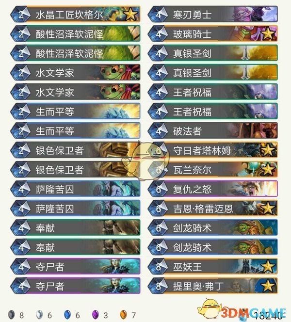 推荐理由:偶数骑有着良好的抗快攻属性,生平奉献一波清场之后,快攻很难再站住场面,大宝剑,苦囚,夺尸者都能有效针对快攻的随从,再不济也能修血量方便奉献的清场,中期有剑龙骑术和塔林姆制造嘲讽保住血量,质量生物有巫妖王,佛丁,打慢速卡组也能一战。