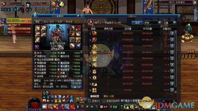 带上奶妈后伤害二觉达到了745910802,而附魔属强后大家可以看到伤害测试项目中,伤害提升了一些,二觉伤害多了3400万这样,所以其实属强在有奶的情况下,提升量其实要比三攻附魔提升量更高一些。