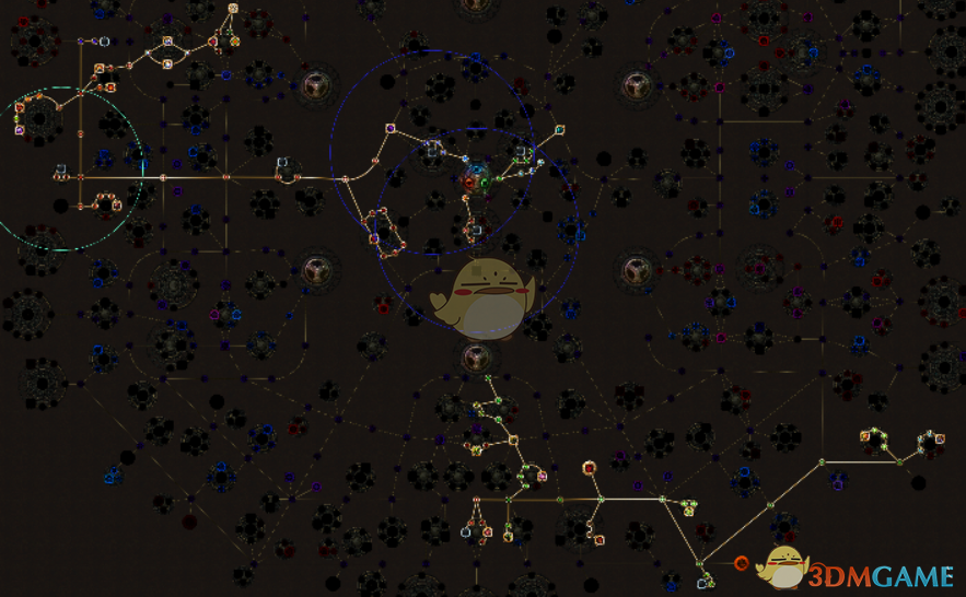 狮眼放左边可以获得大量暴击率和暴击伤害,还有10%暴击得红球,实际战斗中还是很容易满的,然后红球我在天赋上还点了一个出来,现在4红球的情况先可以达到3秒不朽,但是我其实有考虑说不点那个红球,因为有时候3秒并不能得满4球,也就是不能无限不朽,所以这里我先持保留意见。剩下5个珠宝孔这是放深渊珠宝我的珠宝属性都在装备那里了。不点零点是因为之前我也发过帖子问天灾之箭的孢子与零点的关系,可惜得不到解答,所以我就不点了。